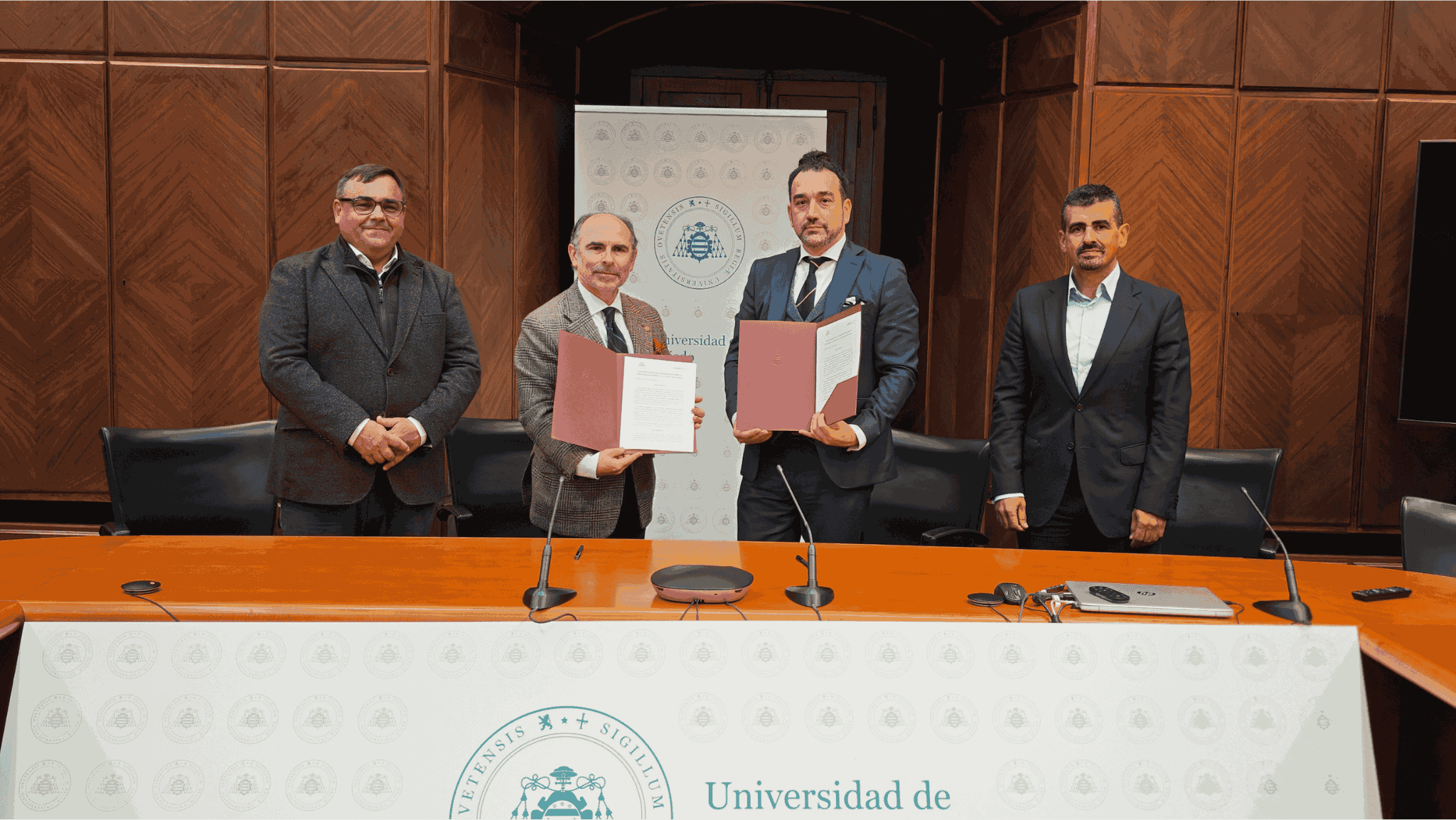 The signing ceremony was presided over by the rector of the University of Oviedo, Ignacio Villaverde, and the general director of ICAMCyL, Santiago Cuesta-López, who were accompanied by the deputy director of the center, José Ramón Natal, and the director of the Research Institute on Raw Materials (ASRAM) of the Asturian academic institution, Juan María Menéndez Aguado, who works closely with the Foundation in promoting the creation of a hub for critical and strategic raw materials in the northwest of the Peninsula.