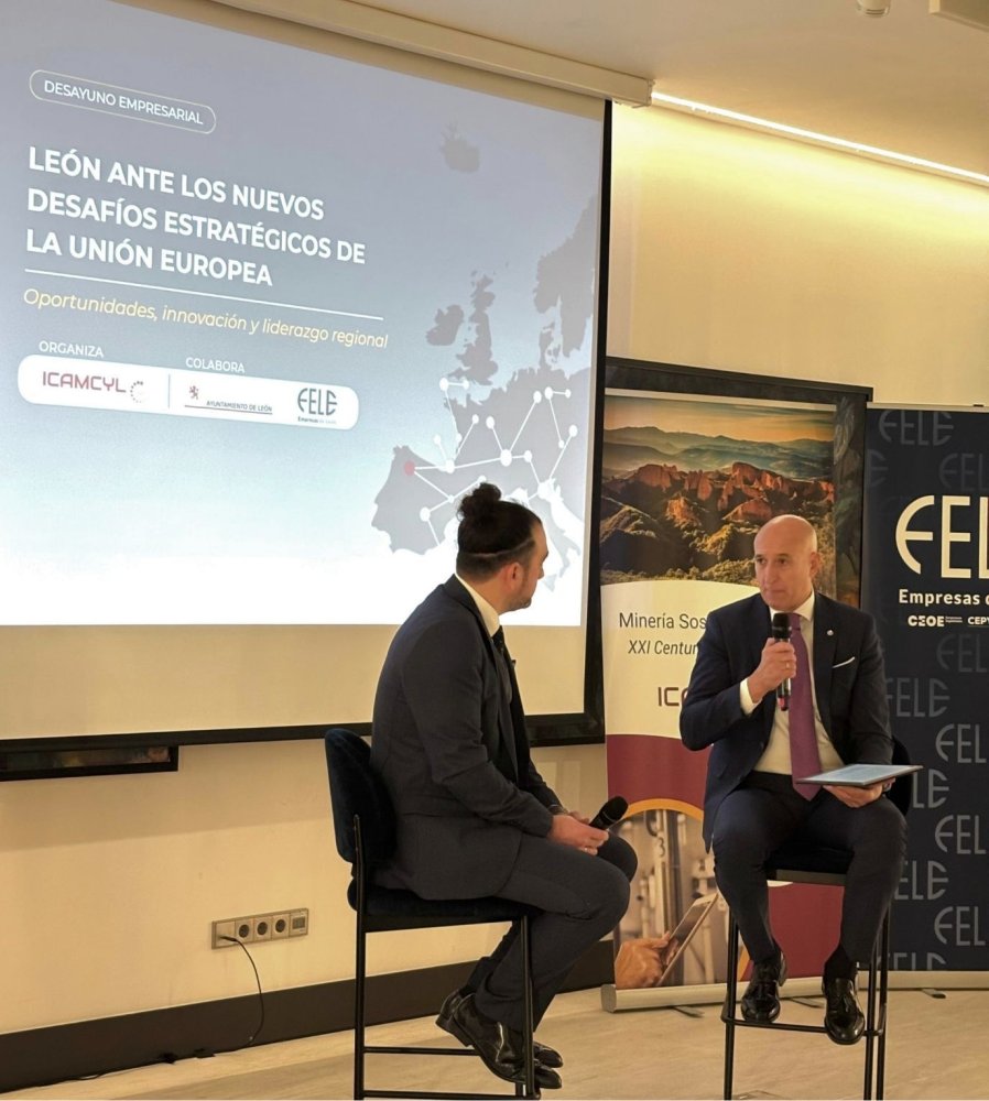 Nuestro día a día / 13-01-2026La ciudad de León ha acogido hoy el desayuno empresarial “León ante los nuevos desafíos estratégicos de la Unión Europea.”, organizado por la Fundación ICAMCyL en colaboración con el Ayuntamiento de León y la Federación de Empresas de León. El encuentro, que ha abierto el alcalde de León Jose Antonio Diez, ha reunido a representantes institucionales, empresariales y del ámbito de la innovación para reflexionar sobre el posicionamiento de León ante las prioridades estratégicas actuales de la Unión Europea.