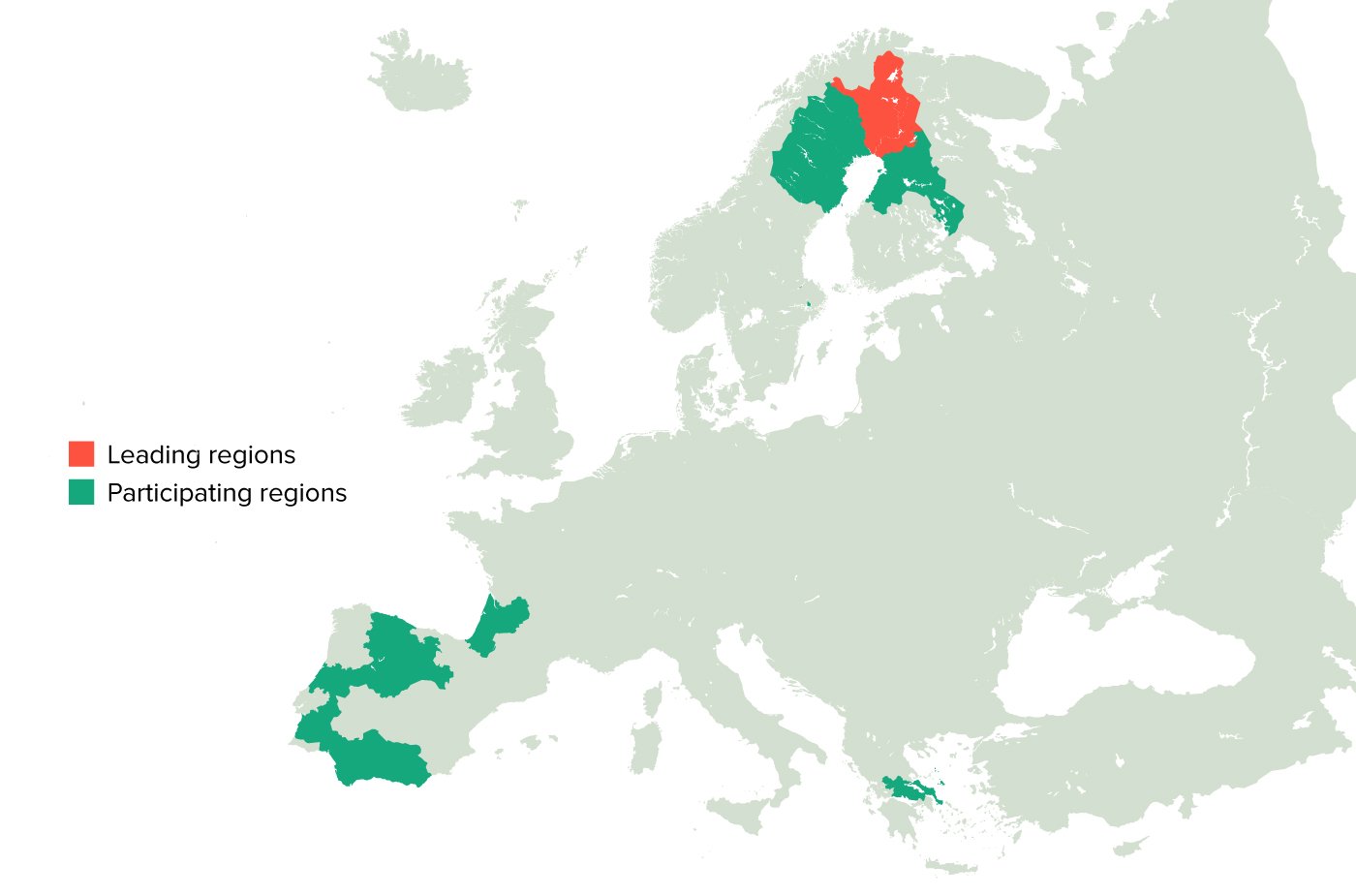 La S3P de minería está formada por Laponia (FI) como región líder y otras 15 regiones participantes:
