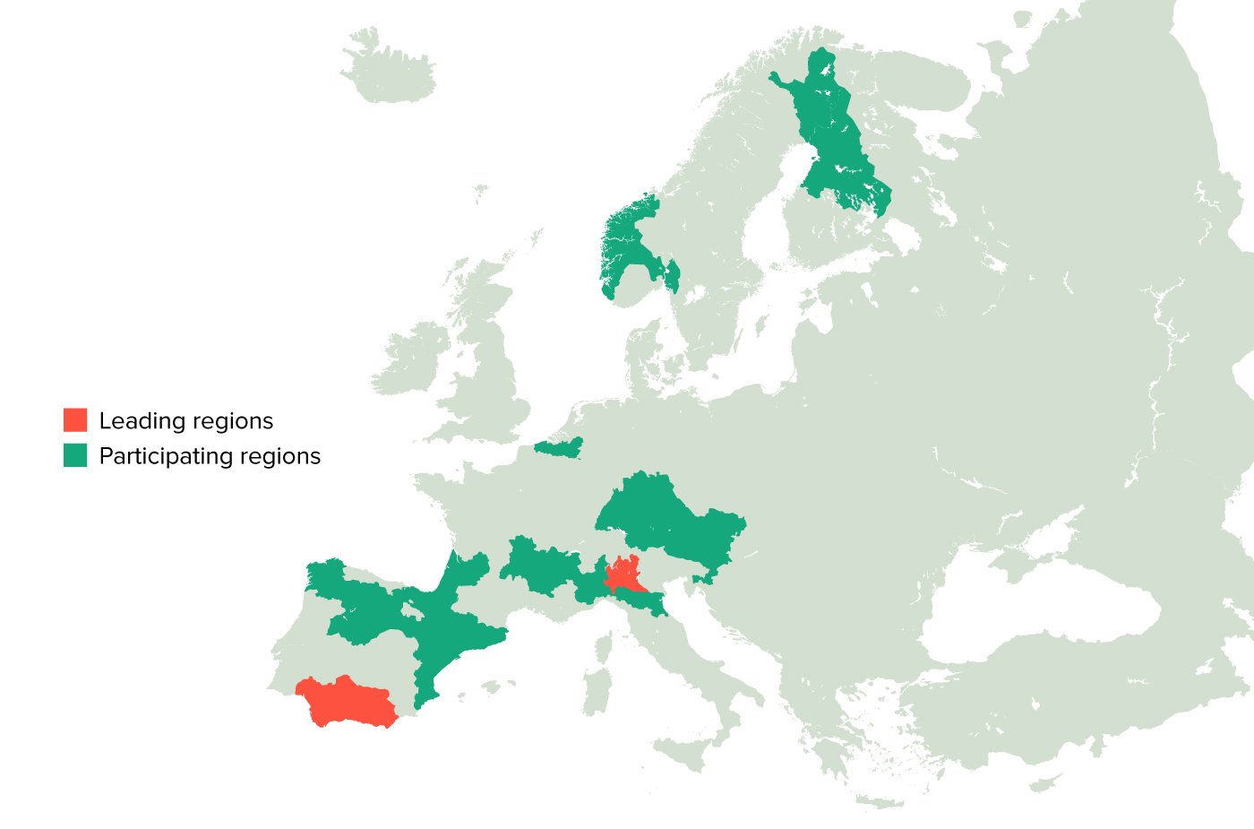 Esta Asocicación está formada por Andalucía (ES) y Lombardía (IT) como regiones líder y 26 regiones participantes: